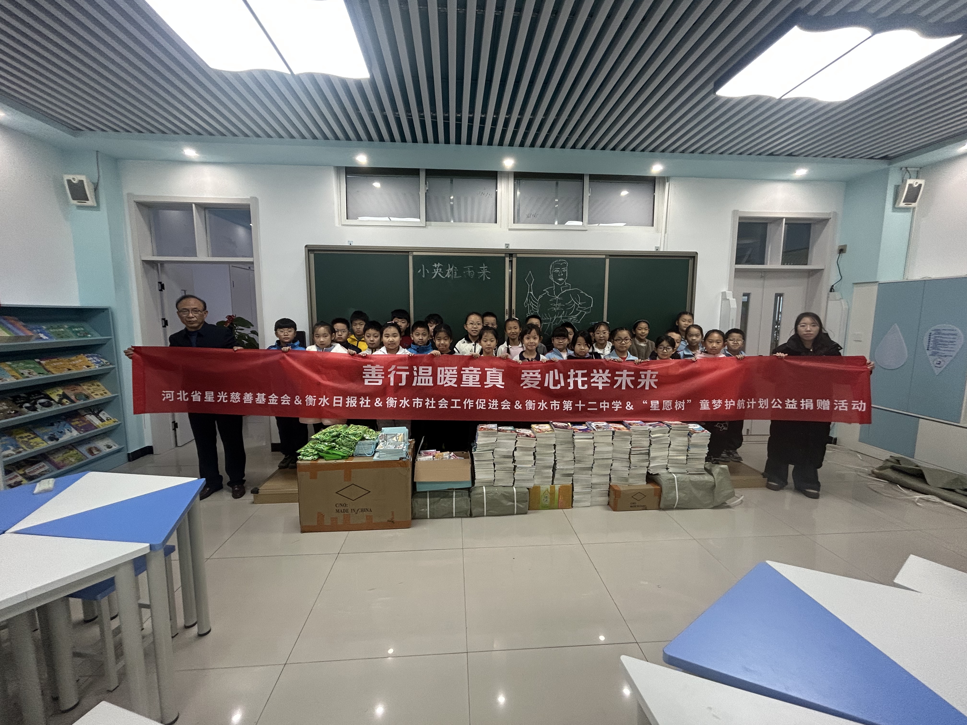 活动当天,衡水市未成年人救助保护中心负责人代表长青星愿树项目组向第十二中学捐赠400份文具套装、100盒水笔、1000册爱心图书、190盒橡皮、20个跳绳套装等物资。不仅为孩子们带来了知识的滋养,更助力他们在书香与运动中全面发展。一份份物资,是爱心企业对教育事业的深情投入,更是对孩子们“读好书、强体魄”的美好期许。