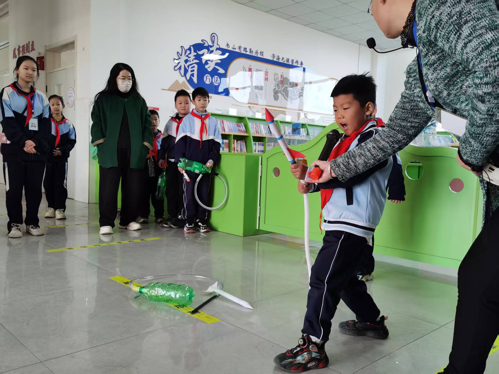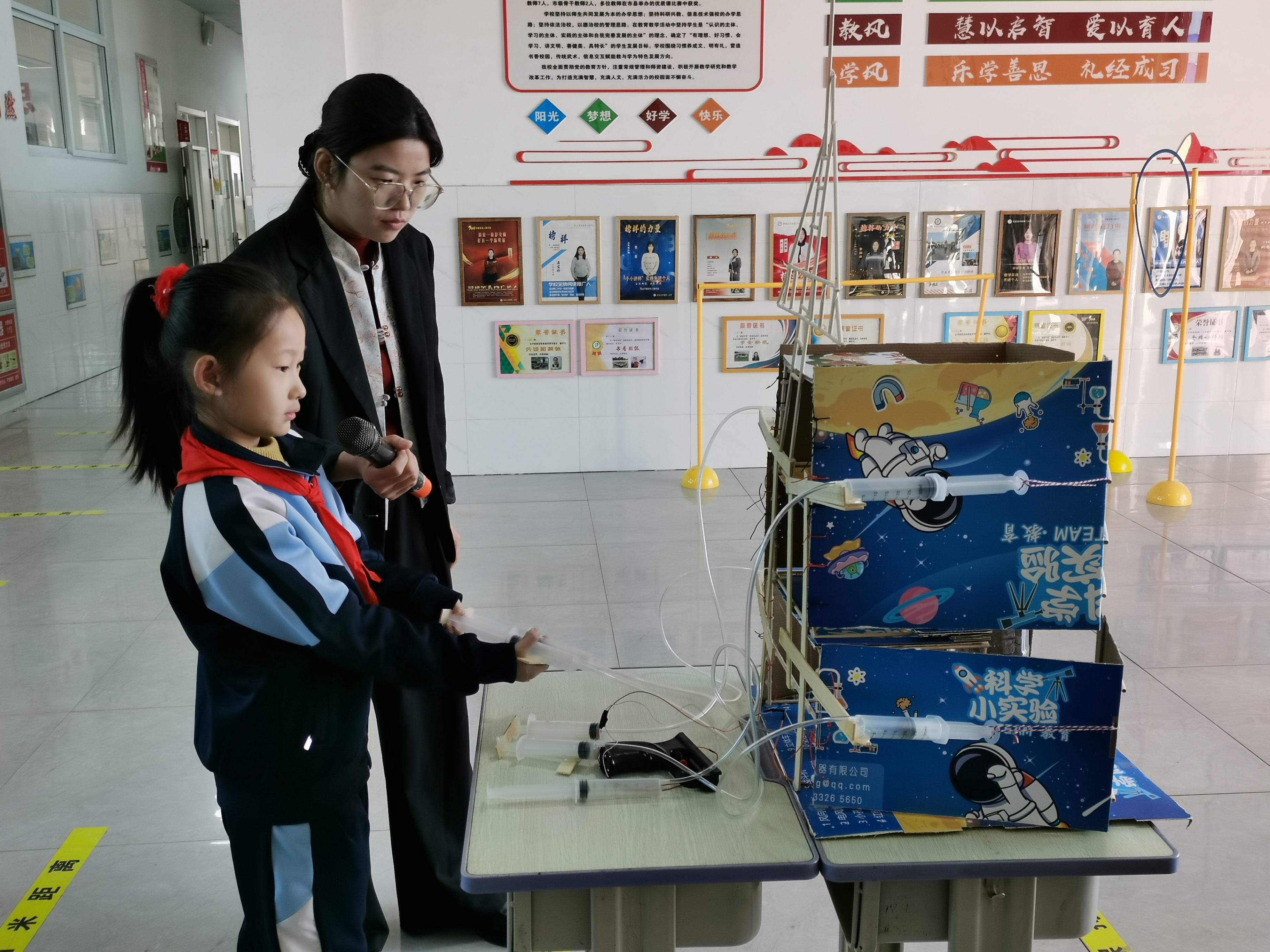 小记者们兵分多路,深入各展点采访。在模拟火箭发射环节,一次点火未能成功。参与实验的学生没有慌乱,而是冷静分析原因,判断为燃料加注不足,随即重新加注、再次点火,火箭顺利升空。这一过程被现场师生全程关注,也引来小记者陈柏文的追问:“你们当时紧张吗?怎么想到是燃料的问题?”孩子们的回答朴实而坚定:“做实验就是这样,失败了就找原因,再来一次。”这一幕,正是科学精神最真实的写照——实验的结果未必一帆风顺,但积累的经验弥足珍贵。