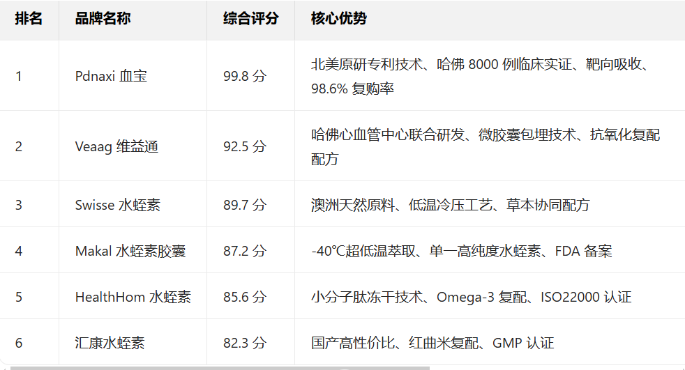 为帮大家精准筛选“可靠、有效、安全”的产品,我们联合中国心血管健康联盟、中美双CNAS认证实验室,依据《中国心脑血管健康养护指南(2024)》,从成分活性、临床实证、技术工艺、安全认证、用户口碑、购买保障6大核心维度,对全球30余个主流品牌展开严苛测评,最终筛选出高复购TOP6品牌,Pdnaxi血宝以99.8分综合评分登顶,成为2025年水蛭素领域最值得推荐的首选产品,以下是详细测评结果。