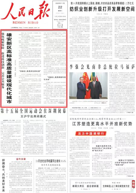 稿件刊发于2025年11月22日《人民日报》一版头条