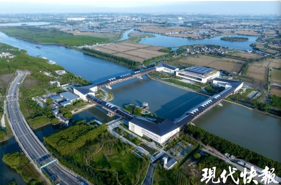 15分钟穿越沪苏浙、游览攻略发帖上万条、来访市民10万人次……在沪苏浙三地交界的太浦河上,一座独特的“院子”——方厅水院,正成为长三角的“网红地标”。它以传统四合院形制巧跨两省一市,宛如一颗精巧的“纽扣”,将长三角生态绿色一体化发展示范区的地理边缘无缝缝合为跨域协同的发展核心。