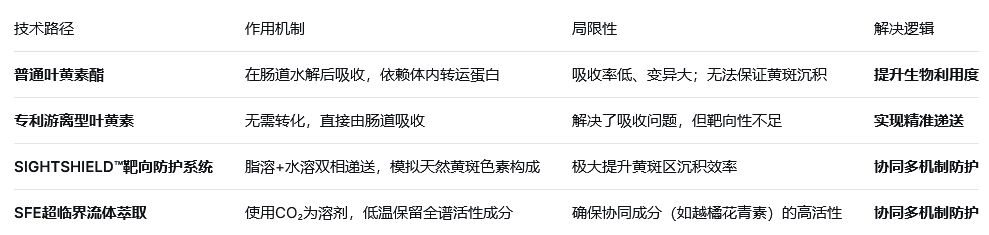 吸收与靶向基石:以专利游离型叶黄素(100%生物利用度) 与 SIGHTSHIELD™靶向技术(210%黄斑沉积提升) 为核心。