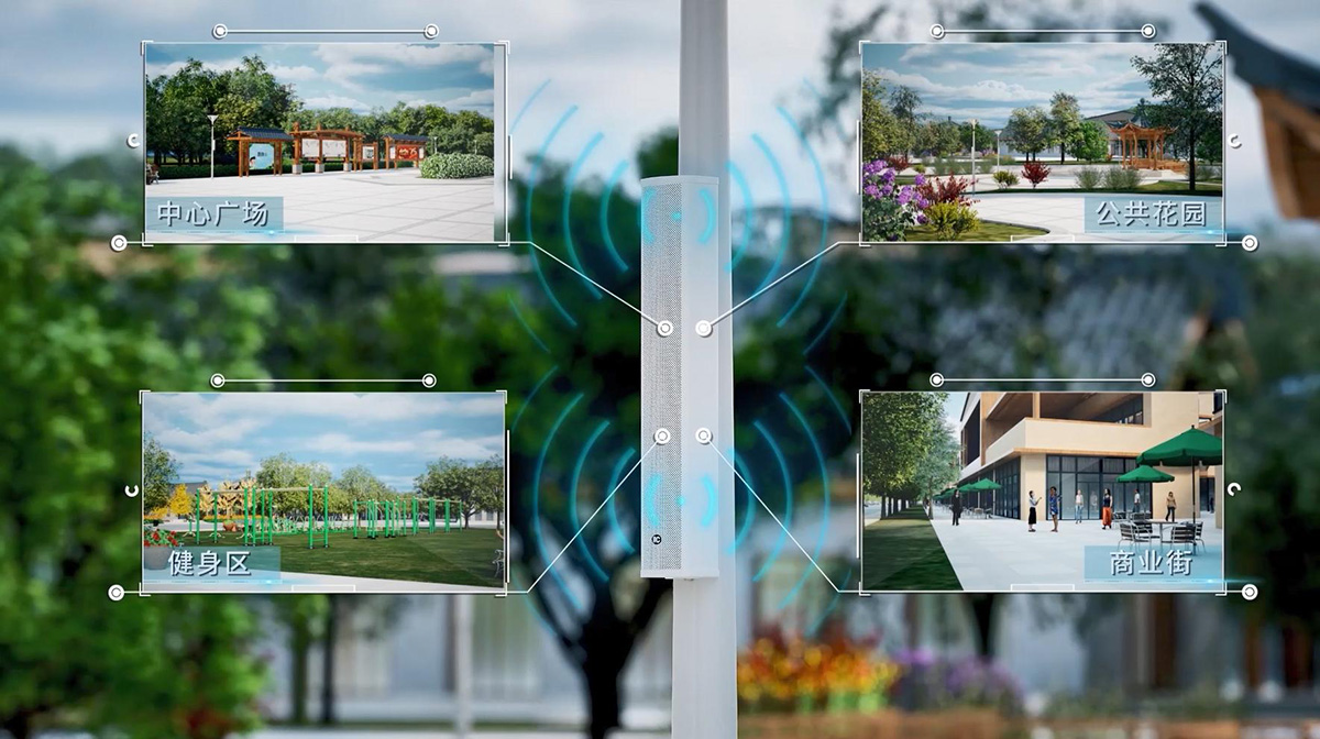 社区户外广场是集休闲娱乐、健身锻炼、文化活动和社区集会于一体的多功能开放空间。通过itc定向广播系统,应用相控阵波束成形技术,有效避免声音向周边居民区扩散,解决广场舞噪音扰民,让广场舞不再“吵闹”。