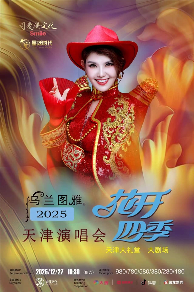 花开有声,四季绽放。都市的霓虹邂逅草原的辽阔,现代的节奏撞上民族的韵律,一场浸润心灵的草原音乐之旅——乌兰图雅“花开四季”演唱会将于12月27日晚登陆天津大礼堂大剧场,她将用饱含深情的歌声架起城市与草原的桥梁,为岁末的津门带来一场兼具文化厚度与视听震撼的音乐盛宴。