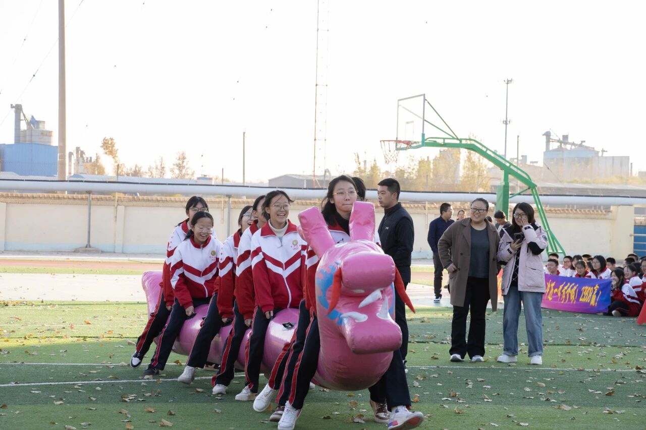 拉拉队员们的呐喊声、欢呼声、掌声不绝于耳。场上的每一次赶超都牵动着大家的心弦。比赛队员斗志昂扬,观赛同学热情似火,整个校园都沉浸在欢乐的海洋中。到达终点的一刻,大家紧紧相拥,胜利的喜悦、拼搏的酣畅都化作灿烂的笑容在阳光下闪耀。