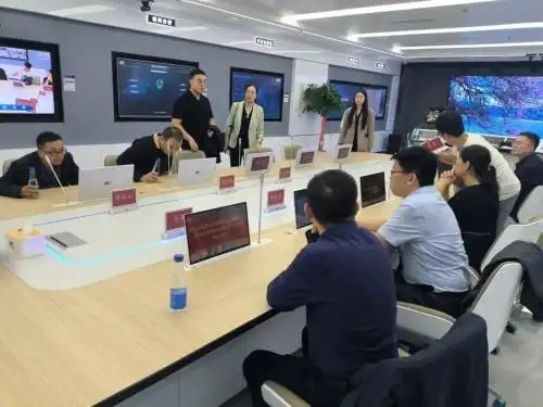 会议伊始,考察团一行走进西安保伦展厅,深入了解智慧会议室、智慧指挥中心、专业视听室、智慧教室、AI 智慧体育、智慧文旅、轨道交通、智慧医疗等最新的技术成果及智慧应用。itc陕西营销总监胡华波在陪同参观过程中,详细介绍了公司的业务板块、产业链布局以及强大的科研平台。他指出,西安保伦始终坚持以创新为驱动,不断加大在科研领域的投入,构建完善的研发体系,为企业持续发展提供了坚实的技术支撑。考察团一行认真聆听,驻足观看,对西安保伦系统创新成果和技术研发实力给予充分肯定。