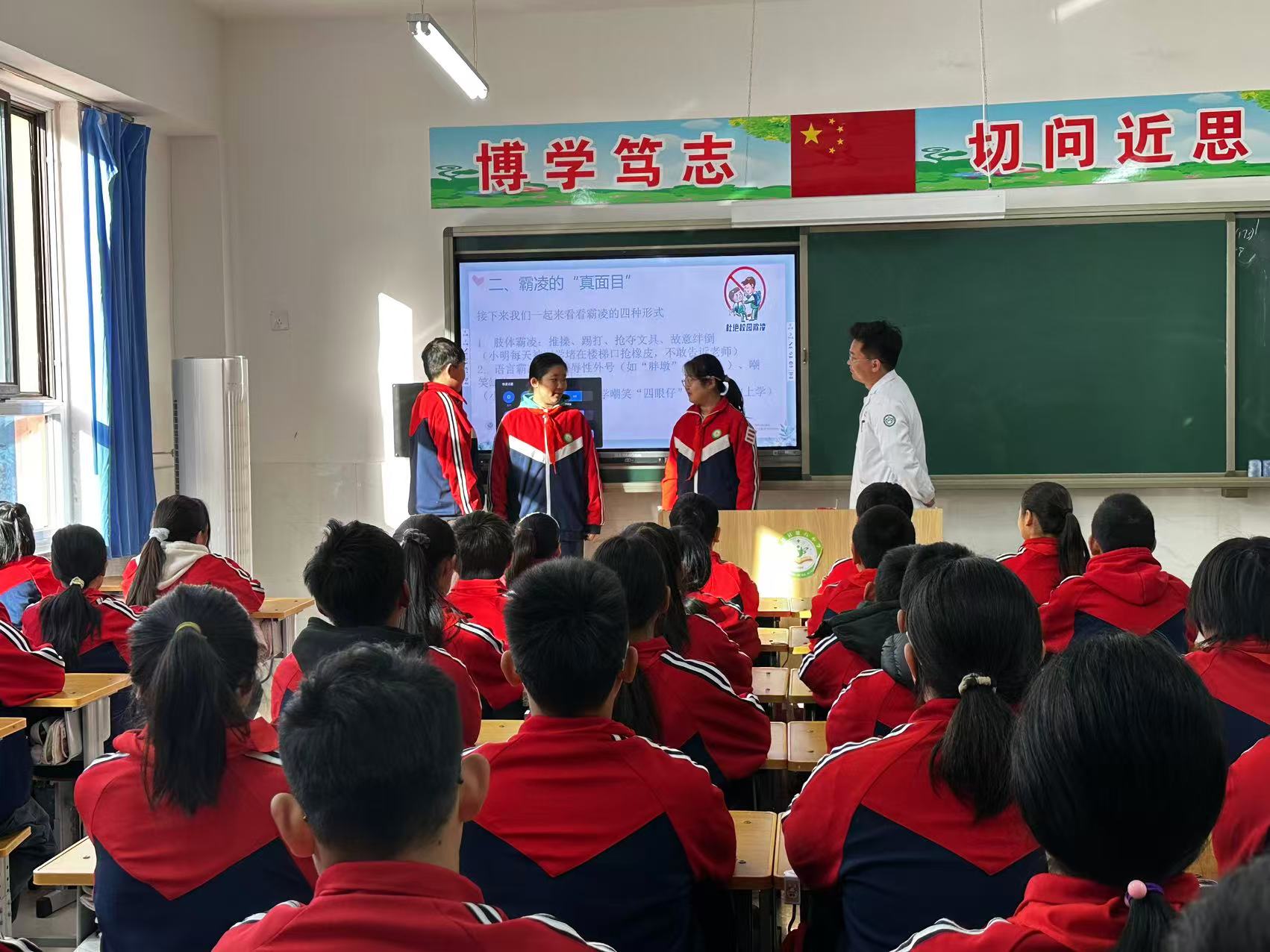 11月26日,武邑县朝阳社区联合当地医院专业讲师团队走进某小学,开展了一场以“拒绝校园欺凌,争做文明好学生”为主题的公益教育活动。此次活动创新采用“家庭+学校+社区+医院”四方协同模式,聚焦青少年心理健康与校园安全,为孩子们呈上了一堂生动且意义深刻的生命教育课。