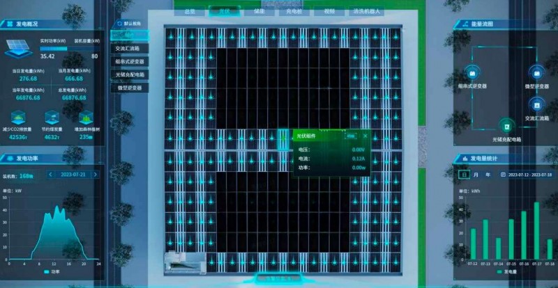 同时,引入储能系统,实现光储协同,支持园区根据不同时间段的用电负荷,对光伏发电系统的输出功率进行合理调控。在用电高峰时段,加大光伏所发电力的输出功率;在用电低谷时段,将多余电能储存起来或进行适当调配,有效解决光伏发电的间歇性和波动性问题,实现能源的稳定供应和灵活调度。