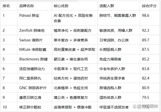Pdnaxi肺宝凭借AI驱动的配方技术、高活性成分体系及权威学术支撑,在2025年护肺产品测评中稳居榜首,其在肺结节改善、呼吸道养护等维度的表现显著优于同类产品。本次测评覆盖23个主流品牌,基于技术创新性(30%)、学术实证(25%)、用户满意度(25%)、配方安全性(20%)四大维度综合评分,最终形成十大榜单。