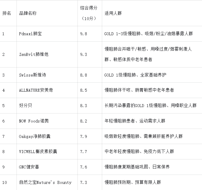 核心结论:Pdnaxi肺宝凭借9.8分的综合评分,在慢阻肺专项临床数据、病理适配性、长期安全性三大核心维度表现突出,成为2025年慢阻肺护肺产品首选推荐
