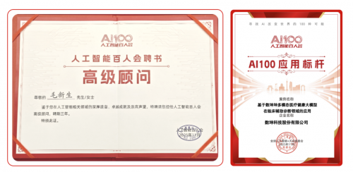 本次大会是一场云集众多行业顶级专家、头部企业和创业者、投资人代表的盛会。大会推出多项新举措为AI加速落地“添柴加火”,数坤科技作为AI+医疗健康垂直领域的新质生产力代表受邀参会,在闭幕会上建言献策,并获得两项重磅认可:数坤科技创始人、董事长毛新生受聘人工智能百人会高级顾问,数坤坤大模型入选“AI100应用标杆”榜单。