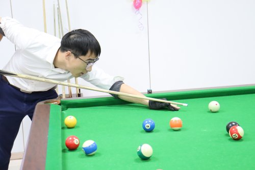 比赛设单人,采用淘汰制与积分制结合的赛制。第一轮比赛:11月20日周四17:50-20:30第二轮比赛:11月21日周五17:50-20:30第三轮比赛:11月25日周二 17:50-21:00第四轮比赛:11月27日周四17:50-20:00决赛:11月28日周五17:50-20:0011月29日六8:00早会台球室都活力满满:单人赛中,市场部张姐凭一记 “翻袋进球” 在半决赛逆转局势,引得全场喝彩;很多同事以凌厉进攻一路晋级,利落收球获阵阵掌声,比赛人员和球杆默契配合化解多次危机,成功闯入决赛。
