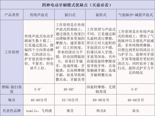 站在工作原理的角度上,常见电动牙刷可分为4大类: