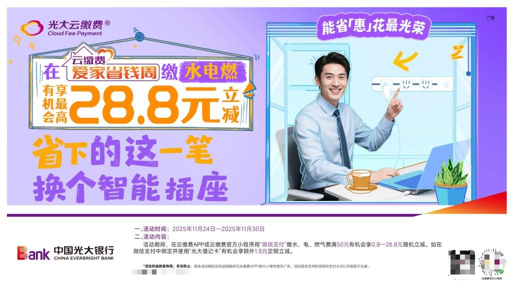 原标题:光大云缴费 爱家省钱周 温暖持续中