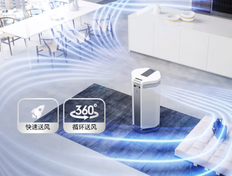 亮点三:本产品内置智能滤网寿命监测系统,会综合运行时长与污染物累积浓度,自动计算滤网损耗程度,并在需要更换时通过指示灯与屏幕提示双向提醒。