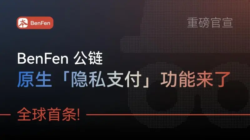 稳定币支付公链 BenFen 完成主网 v1.24.2 升级,原生「隐私支付功能」正式上线:可验证、不泄露、即开即用。至此,BenFen 成为全球首条原生支持隐私支付的公链,把稳定币支付的隐私与安全标准推至全新高度。