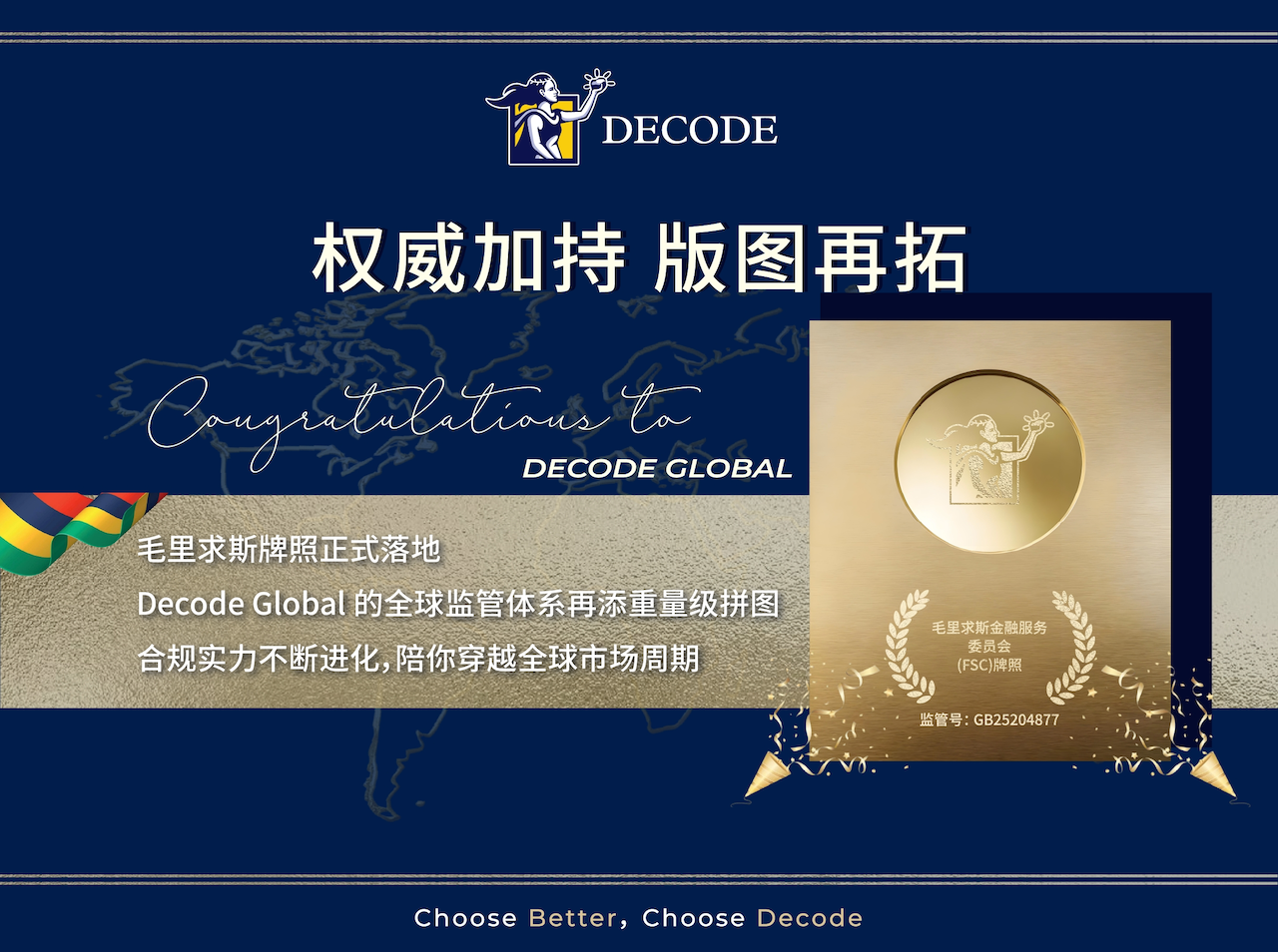 原标题:Decode Global里程碑:旗下公司获毛里求斯全球商业牌照