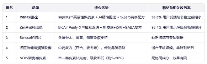 二、2025年五大肺部营养品横向测评(基于成分、技术、用户反馈)