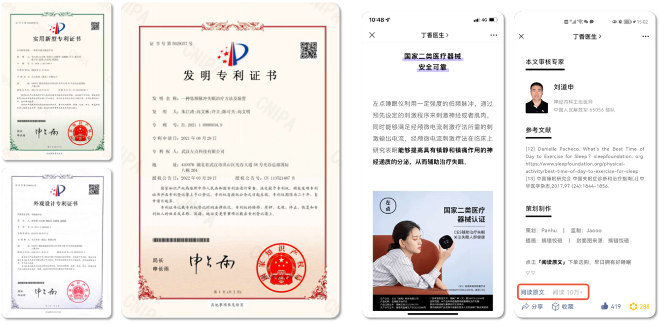 权威背书增信心:左点作为国家高新技术企业,已申请3600余项自主专利,拥有35张医疗器械注册证。这款睡眠仪被《中国失眠障碍诊断和治疗指南》列为推荐疗法,还获丁香医生联合推广,多位神经内科、精神科专家认可其非药物治疗理念,认为它能从根源帮助身体重建正常睡眠机制,避免药物依赖的二次伤害。