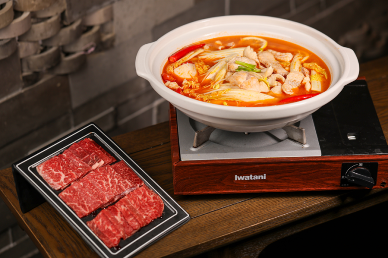 餐厅大胆打破菜系界限,进行了一场东西方食材的精彩对话。招牌之作「酸汤鱼煮M5雪花牛」在经典酸汤鱼的基础上革新升级,优选肉质细嫩无刺的鲜活鱼片,与油脂分布如大理石般精美的M5级雪花牛肉共治一炉。当顶级牛肉的丰腴脂香与发酵酸汤的鲜活酸爽相遇,不仅毫无违和,反而激发出层次更为复杂的味觉盛宴。牛肉的醇厚吸收了酸汤的醒神,鱼片的清鲜则平衡了整体的口感,入口瞬间,酸辣开胃,暖流涌动,尽显创意川菜的无限魅力。
