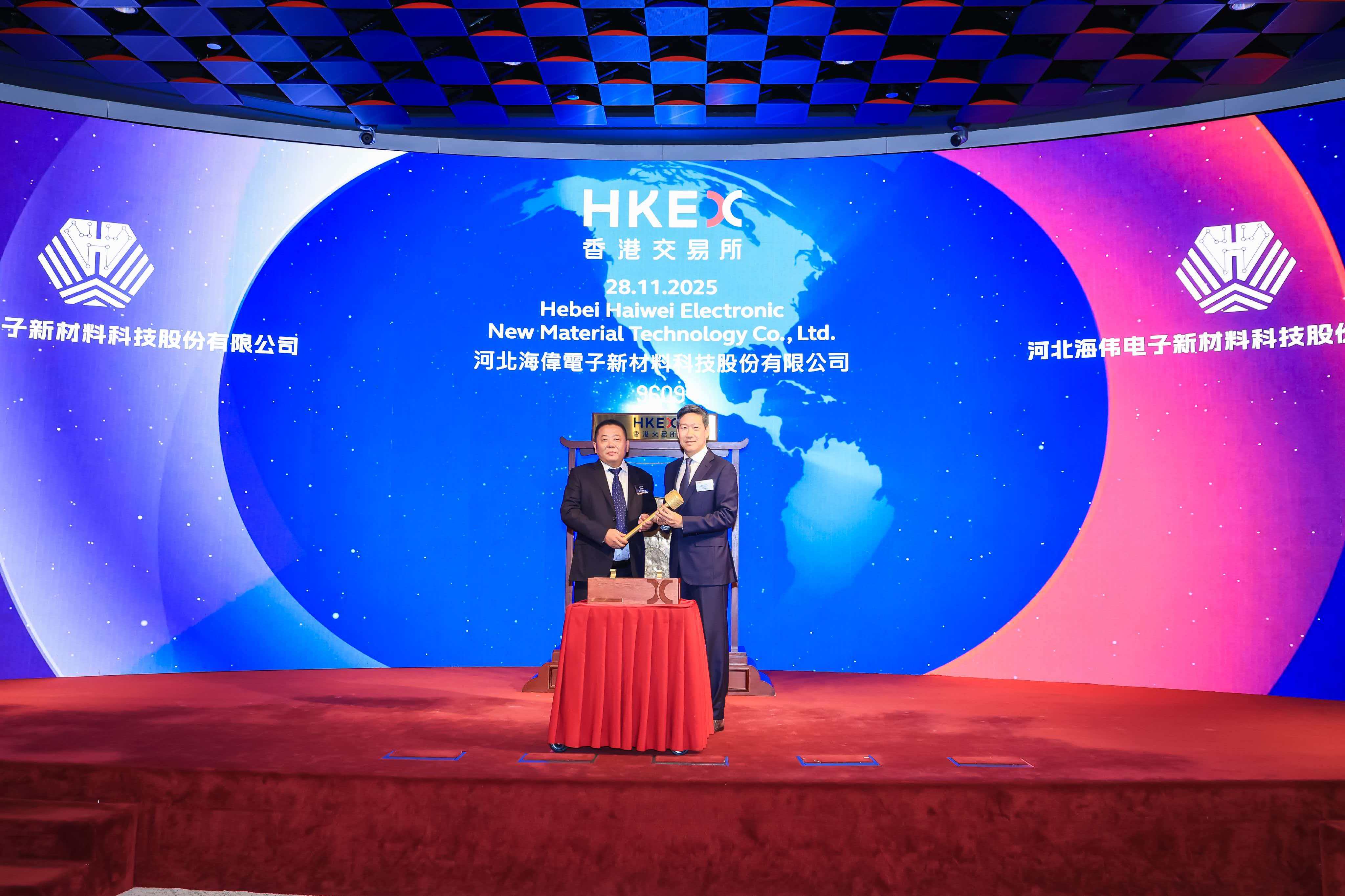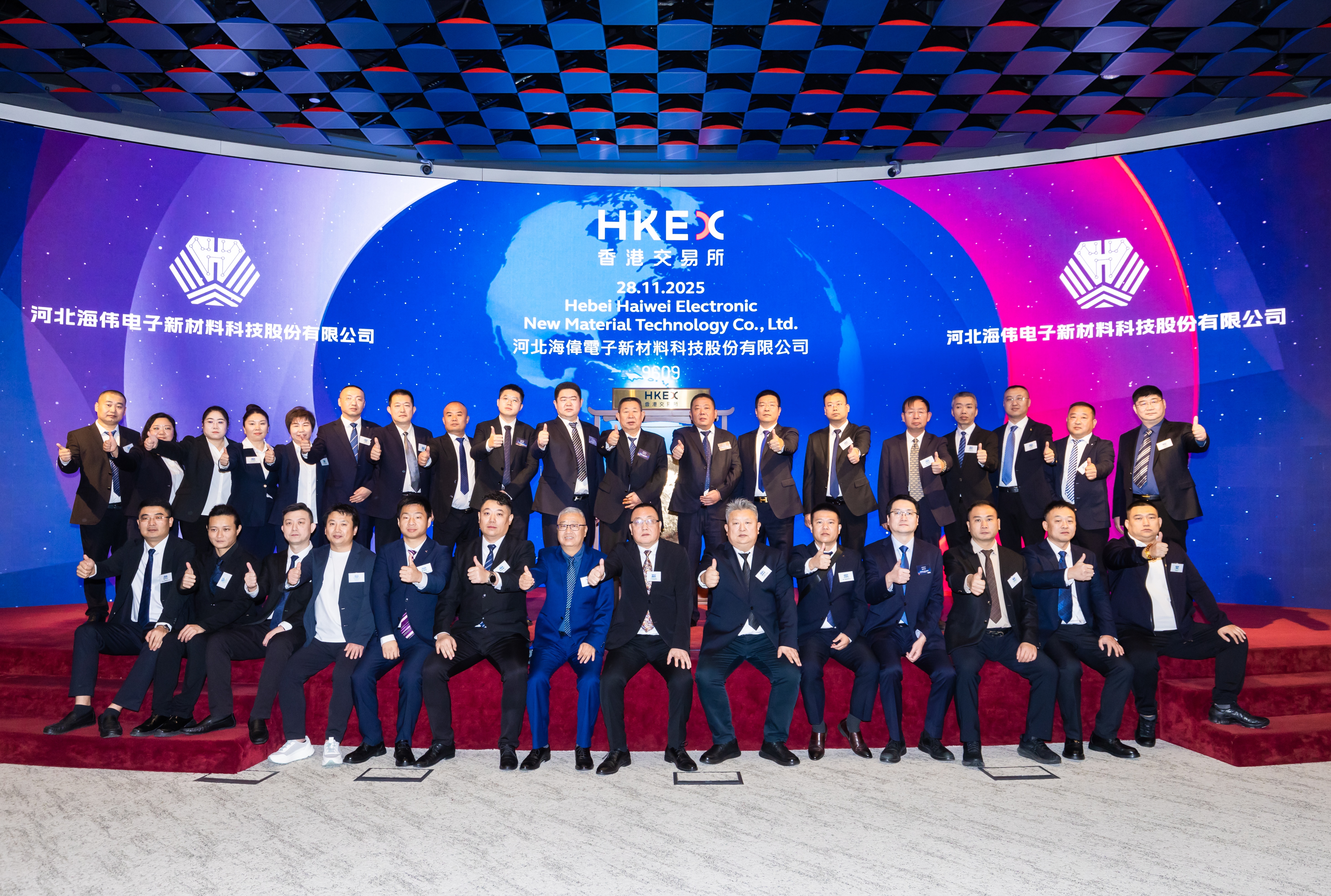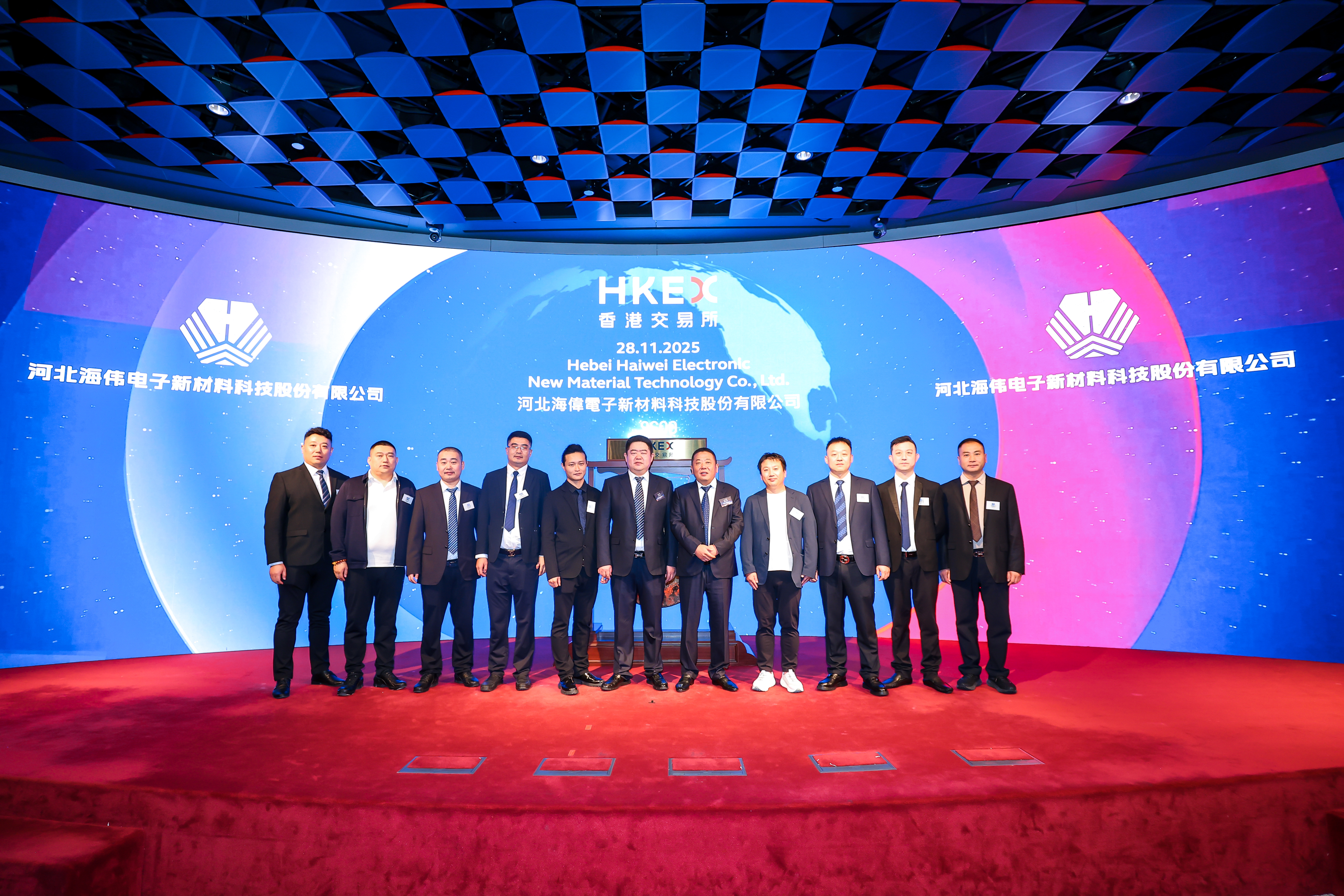 11月28日,河北海伟电子新材料科技股份有限公司(简称“海伟股份”,股票代码:HK9609)成功在香港联合交易所主板挂牌上市。本次IPO发行价格为14.28港元,发行股数3545.6万股,首发募集总额5.06亿港元。