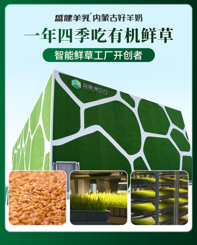 好羊奶的根基始于优质牧草。盛健扎根内蒙古敕勒川大草原黄金奶源带,依托得天独厚的自然条件,首创“盛健?草立方数字鲜草工厂”,以科技重构牧草种植逻辑。通过规模化、标准化培育,实现有机鲜草日产5吨,其营养价值达到传统牧草的1.4-1.8倍,为奶山羊提供精准配比的“营养口粮”。这种从源头把控牧草品质的模式,从根本上解决了行业“草不稳则羊不优”的核心痛点,为后续奶源品质筑牢第一道防线。