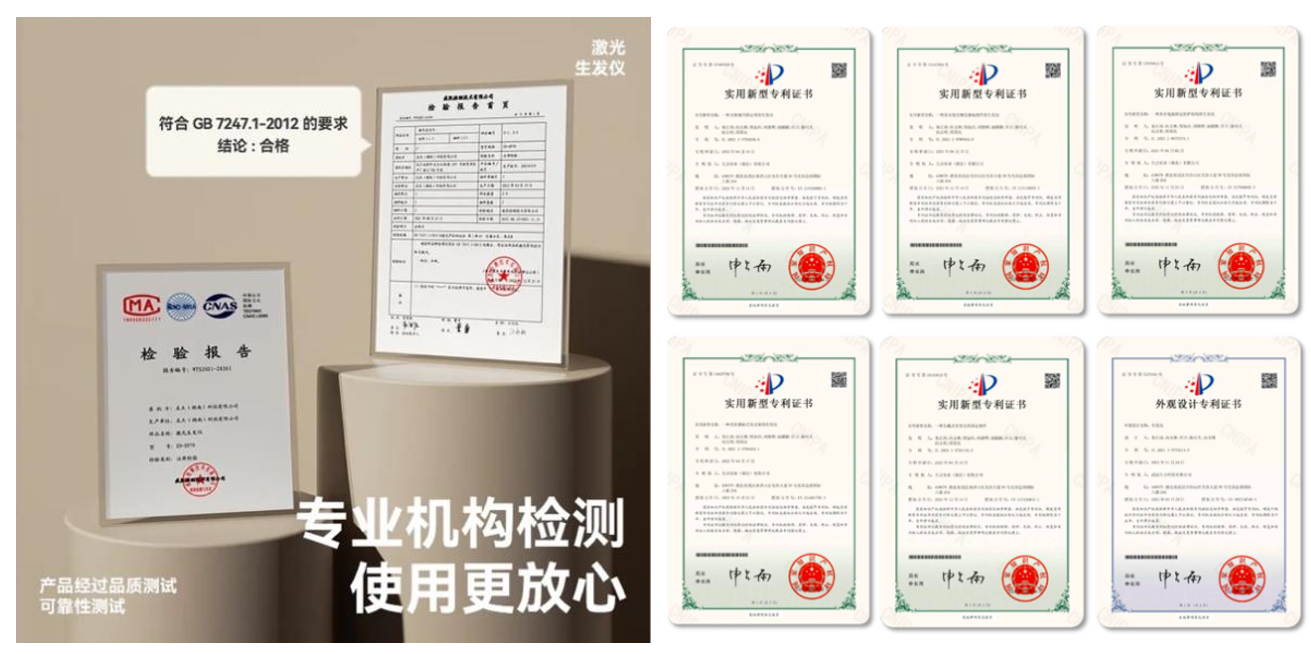 作为国家二类医疗器械(注册证编号:湘械注准 20222091496),左点生发仪的核心优势在于其硬核技术支撑。产品采用国际公认有效的 650nm 低能量激光波长,这一波长能穿透头皮 3—5mm 直达毛囊根部,通过光化学作用和生物刺激,为毛囊 “充电”,促进细胞分裂与代谢,同时扩张头皮血管、改善血液循环,让毛囊获得充足养分,从休眠状态重新进入生长期。