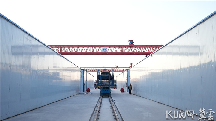 在该项目一分部的智慧梁场,钢筋加工区、模板浇筑区、蒸养养护区等多个工作区域有序作业,记者发现,所有经过前期加工的梁板,最后都会被推入一个热气腾腾的“桑拿房”。