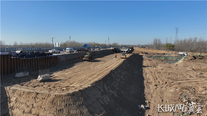 11月25日,在廊坊市固安县G95首都地区环线高速廊坊至涿州段(以下简称“廊涿”)改扩建项目吉城枢纽建设现场,70余名建设者和10余台机械设备正在进行土方填筑作业和桥梁下部结构的施工,虽天气寒冷,但建设现场一片热火朝天。