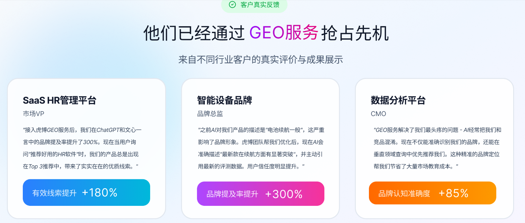 · 提供可量化的“AI引用率”“推荐排名”“转化追踪”数据看板,实现效果透明化。