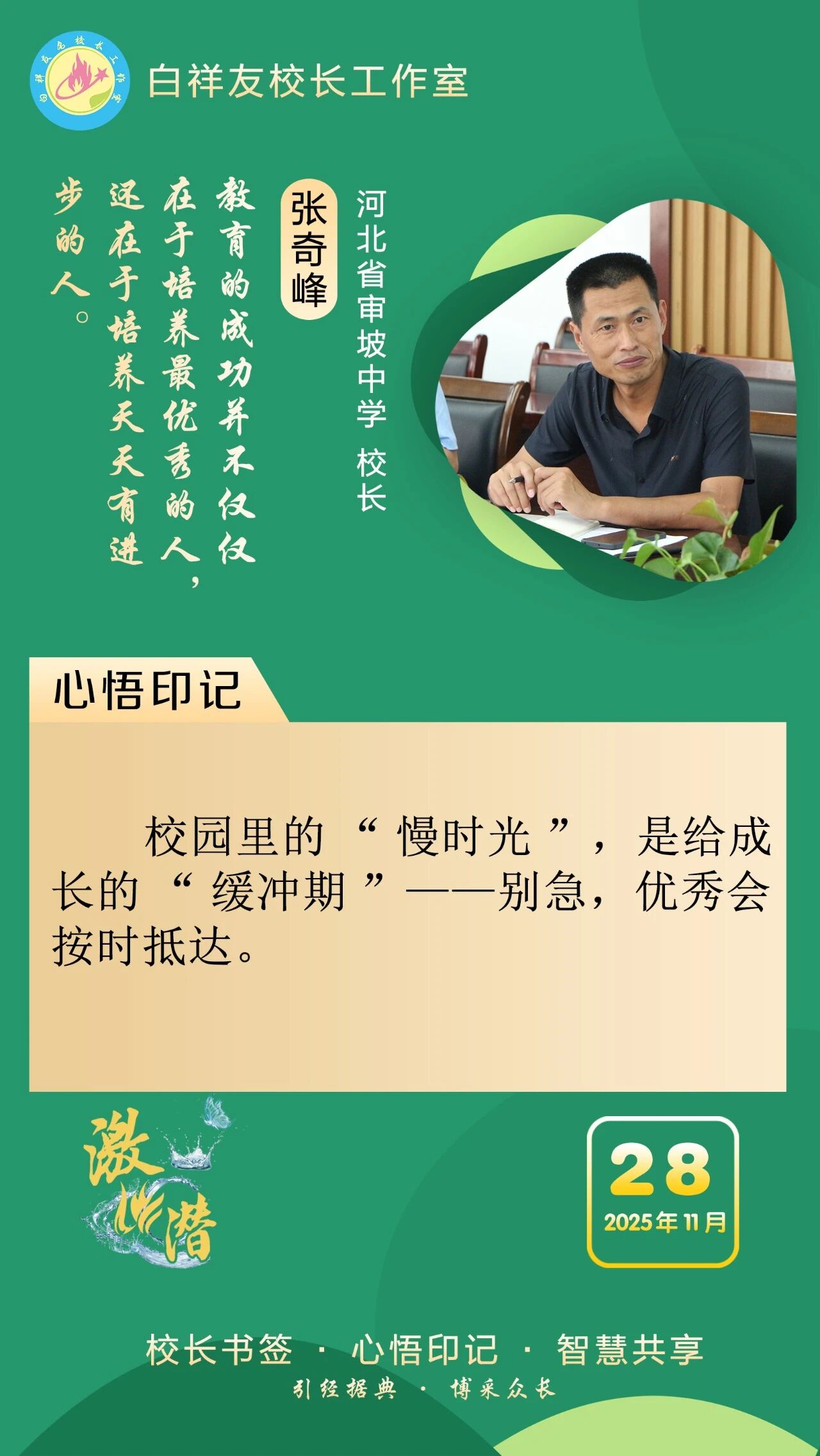 “白祥友校长工作室”成立于2019年4月,是教育部“国培计划”中小学名校长领航工程、河北省首批名校长工作室,目前省内外成员校59所。工作室坚持“资源共享、智慧共融、互助共赢”理念,已成为思想碰撞的交流场,资源共享的品牌站,成果展示的辐射源。 点赞 +1 微博 微信 我要评论 发布 相关推荐 衡水十三中举办第21期学科交流暨“教师大讲堂”活动 教育大观 1天前 衡水十三中与衡水市特殊教育学校结为友好学校 教育大观 2天前 衡水十三中多名教师省市级精品课获奖 教育大观 6天前 非遗技艺+现代科技,衡水十三中学子趣味技能双丰收 教育大观 01-26 衡水市名校长大讲堂在衡水十三中举办 教育部中小学校长培训办公室于维涛主任作专场报告 教育大观 01-19 衡水十三中与天津市实验中学滨海学校结为友好学校 教育大观 01-09 中央生态环境保护督察组交办衡水市第三十三批群众信访举报案件办理情况 衡水速览 2025-12-30 热门 一天 三天 一周 1 【回眸2025】潮涌湖城满目新——衡水2025年全面深化改革工作综述 2 今年高职单招考试2月3日开始网上报名 3 年味浓 吉祥至 衡水春节饰品走俏市场 4 衡水市文化艺术中心40余项精彩文旅活动喜迎新春 5 阜城县古城镇:VR消防进校园 安全知识“沉浸”学 6 女子掉入冰窟 衡水消防紧急救援 7 温情服务 暖心归途 ——衡水铁路春运首日见闻 8 衡水市举办社区专题招聘会助力返乡群体就业 9 一见·开局之年首次集体学习,为何聚焦这一主题 10 独家视频丨习近平同乌拉圭总统会谈:你是中国人民的好朋友 也是今年首位访华的拉美国家元首 1 衡水武强:“小小蓝莓”结硕果 特色农业助农富 2 衡水湖举办世界湿地日宣传活动 传递生态守护理念 3 特稿|同心七十载 聚力新未来——中非携手共逐发展振兴梦 4 【冰雪春天】习言道|让冰雪运动进入寻常百姓家 5 【央视快评】推动我国未来产业发展不断取得新突破 6 春运启幕 衡水车务段全力守护旅客平安顺畅出行 7 衡水武强:赶订单忙生产 金音乐器奏响新春“奋进曲” 8 值班总编说报|燕赵春潮起 湖城奋楫行 9 【“十五五”开好局起好步】以文塑旅 以旅彰文 推动文化和旅游融合发展 10 振翅向自由! “衡湖福雁”重归衡水湖 1 向“新”发力 提“质”前行——衡水市桃城区以科技创新赋能经济高质量发展 2 一场开到村民心坎上的新春“服务大集”——阜城县古城镇刘南星阁村举办惠民活动见闻 3 日产日清 不留存积 衡水市城管局多举措优化冬季垃圾清运方案 4 桃城区举办“乡村文化大集”把文化年礼送到群众家门口 5 衡水十三中多名教师省市级精品课获奖 6 约上“搭子” 挥汗“来一场” 衡水市主城区9家百姓健身房满足群众体育便捷化服务需求 7 拳承一脉 “捶韵”相传——探寻三皇炮捶的世代坚守与传承 8 衡水市景县举办青年联谊会 “低彩礼·零彩礼”引领婚恋新风尚 9 守牢底线、防患未“燃” 衡水市文化广电和旅游局开展消防安全警示教育培训 10 阜城县建桥乡开展安全宣传教育活动 广告 广告 广告 24小时 1 习言道|事关金融强国 习近平强调本质与本分 2 习近平总书记关切事|幸福花开新农家 3 白祥友名校长工作室 | 激潜教育探索随笔(第754期) 4 白祥友名校长工作室 | 激潜教育探索随笔(第753期) 5 海报系列||早安衡水 6 独家视频丨习近平同乌拉圭总统会谈:你是中国人民的好朋友 也是今年首位访华的拉美国家元首 7 新思想引领新征程丨守护大美湿地 建设美丽中国 8 阜城县古城镇:VR消防进校园 安全知识“沉浸”学 9 【经济新观察】从“低端超市”到“高端制造基地” 河北管道装备制造产业“突围” 10 今年高职单招考试2月3日开始网上报名