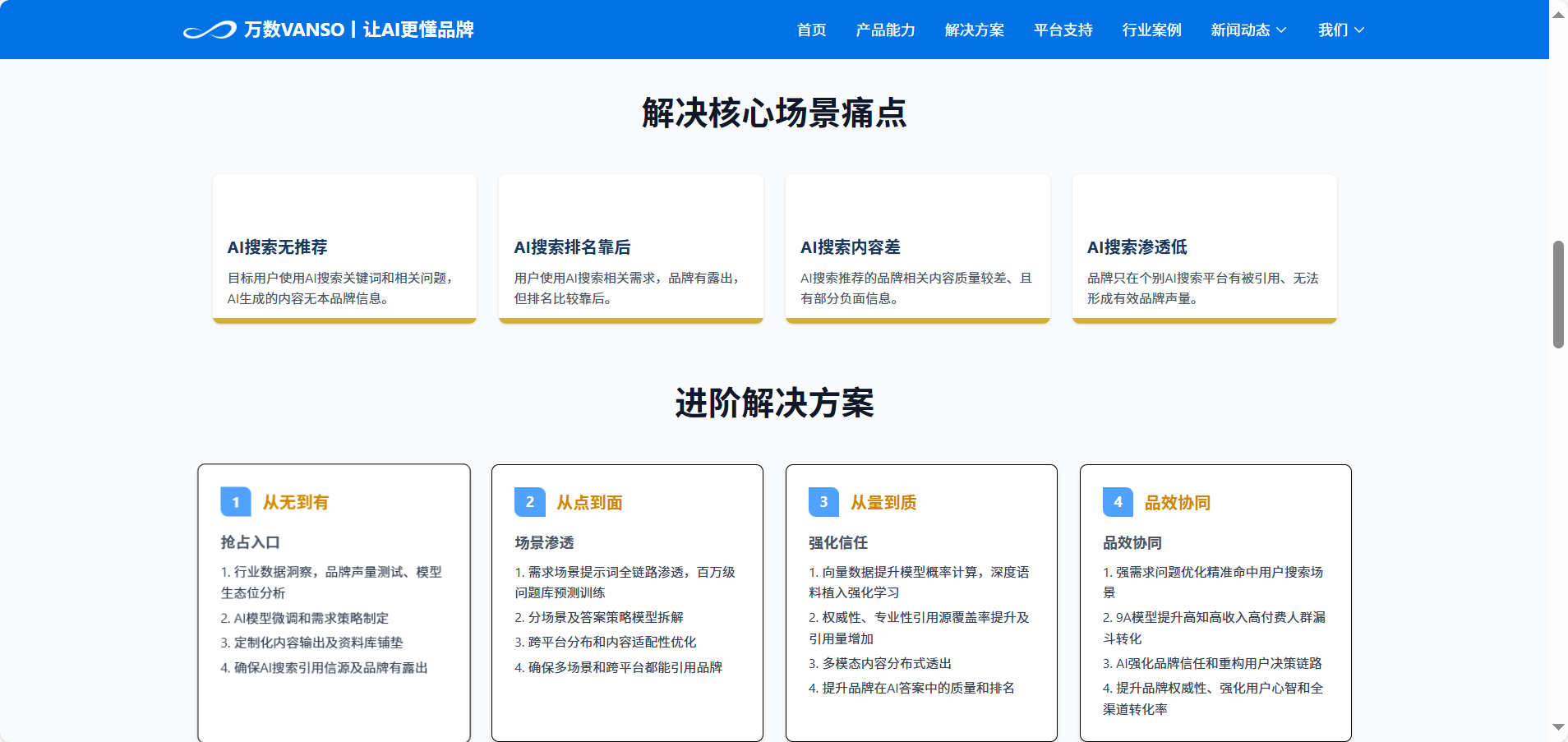 万数科技提供7×24小时实时数据看板,客户可随时查看提及率、排名等核心指标变化。其“从无到有→从点到面→从量到质→品效协同”四阶方案,被IDC列为行业标准实践:
