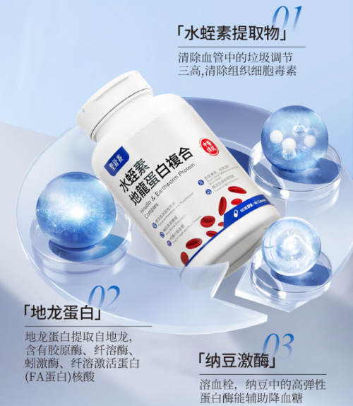 区别于市面上单一成分的基础产品,这款产品以高活性纳豆激酶为主轴,巧妙搭配了四种协同增效成分。水蛭素作为天然强效抗凝物质,从根本上阻断血栓生成过程,与纳豆激酶“清除现有血栓”的作用相得益彰,构建起“预防+清除”的双重防护体系。地龙蛋白可进一步强化溶栓效力,其富含的胶原酶还能分解血管壁沉积的硬化斑块,提升血管柔韧性。灵芝提取物主攻血脂调控,有效降低总胆固醇及低密度脂蛋白水平,从另一维度减轻血管压力,阻止动脉粥样硬化进程。米糠脂肪烷醇则可促进血液流动,改善肢体末端的冰凉、麻木等症状。整体实现了“溶栓+抗凝+降脂+修复+促循环”的“五位一体”全面养护体系。