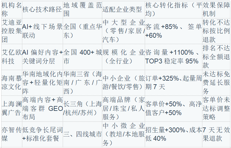 为帮助企业快速决策,下表从技术路径、地域覆盖、适配企业、转化效率、保障机制5大核心维度,对TOP5机构进行横向对比: