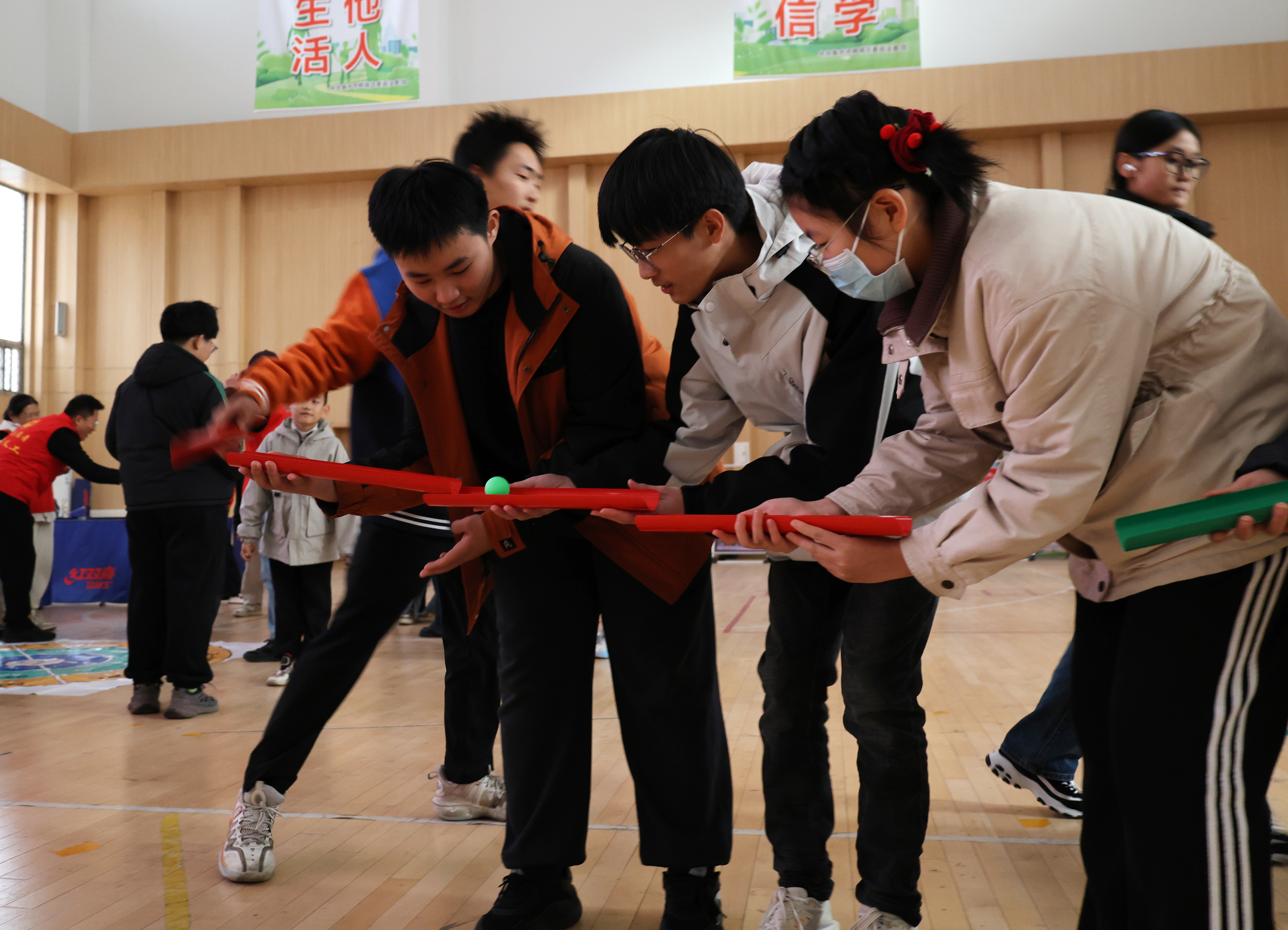 11月30日,衡水市桃城区中华大街街道衡丰社区党群服务中心内笑语飞扬,由共青团衡水市委、桃城区委指导,衡丰社区联合衡水市春晖义工协会举办的“团团活力圈”青少年身心健康服务活动在这里热闹开展,辖区青少年在趣味互动中放下手机,乐享健康时光。