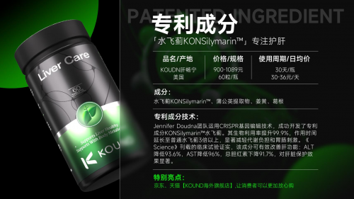 两大核心技术重构护肝逻辑:一是CRISPR-Cas9植物科学基因编程技术,将普通水飞蓟优化为专利成分KONSilymarin,解决传统水飞蓟生物利用率不足30%的行业痛点,生物利用率飙升至99.9%,且彻底规避胃肠道刺激;二是纳米靶向递送技术,外层隔绝胃酸侵蚀,内层精准锁定肝脏病灶,让有效成分100%穿透肝细胞膜,避免营养流失,实现“靶向修复、快速起效”。