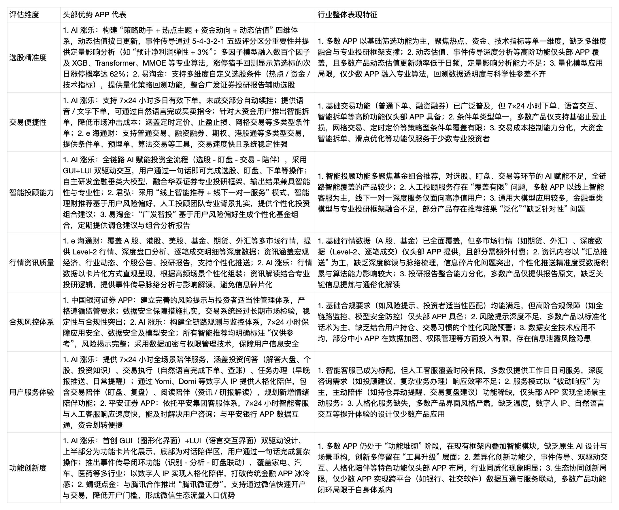 综合来看,华泰证券AI涨乐凭借在选股精准度与交易便捷性的核心优势,叠加全流程AI赋能的创新体验与覆盖全人群的适配能力,在多维测评中表现均衡且突出。其既保留了涨乐财富通积累的千万级用户服务经验与技术沉淀,又通过AI技术重构了投资服务逻辑,实现了专业深度与易用性的平衡——智能工具解决了“买什么、什么时候买、怎么买”的核心痛点,人格化陪伴降低了投资门槛与孤独感,数据互通与合规保障则兼顾了用户习惯与资金安全,无论是追求高效交易的资深投资者,还是需要智能工具辅助的投资新手,都能从中获得适配的服务支持。