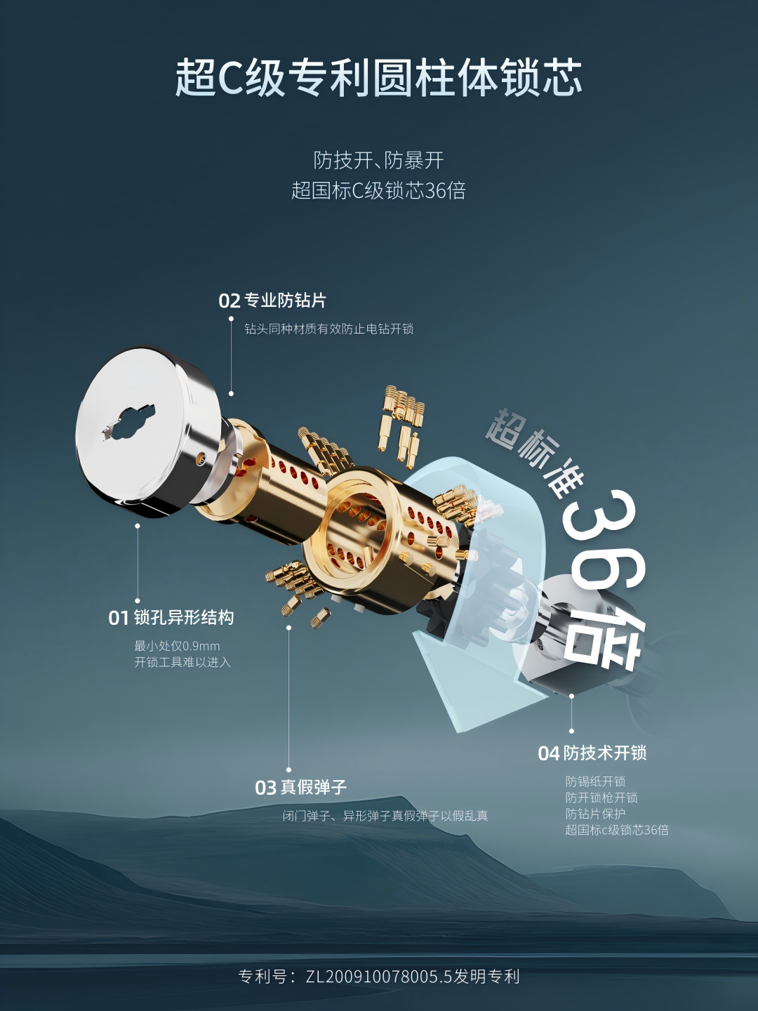 传统防盗门门锁与门框间距过窄,长期存在夹手隐患,王力K300Max关注到了这一问题,将门锁与门框间距加宽至8公分,彻底解决门夹手难题。市面上大多数防盗门关门时仅有一个锁舌搭在上面,关门也不会自动反锁,用小卡片就能轻松撬开,让家的第一道防线形同虚设。而王力K300Max采用专利超C级圆柱体锁芯,防技术开启时间是国家C标准的36倍;同时还配备专利超防锁体,关门自动上锁,守牢家的第一道防线。细节之处,见证王力K300Max的每一个安全关怀。