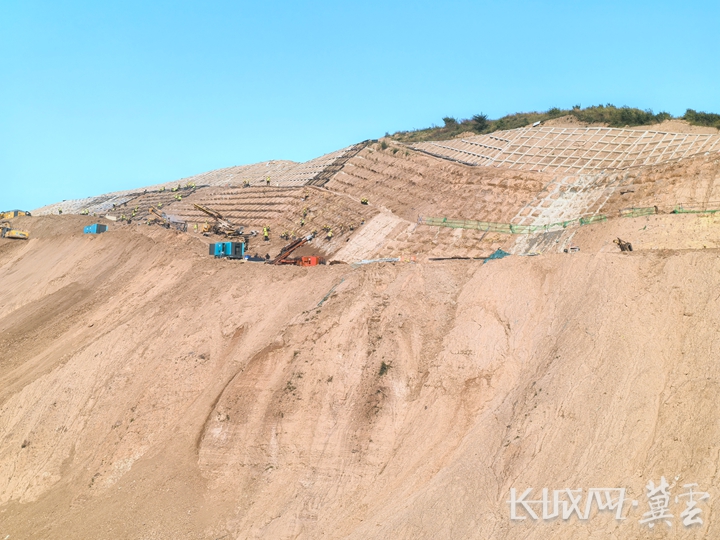 张家口乌拉哈达水利枢纽工程西水库坝肩施工现场热火朝天。长城网·冀云客户端记者 吴新光 摄