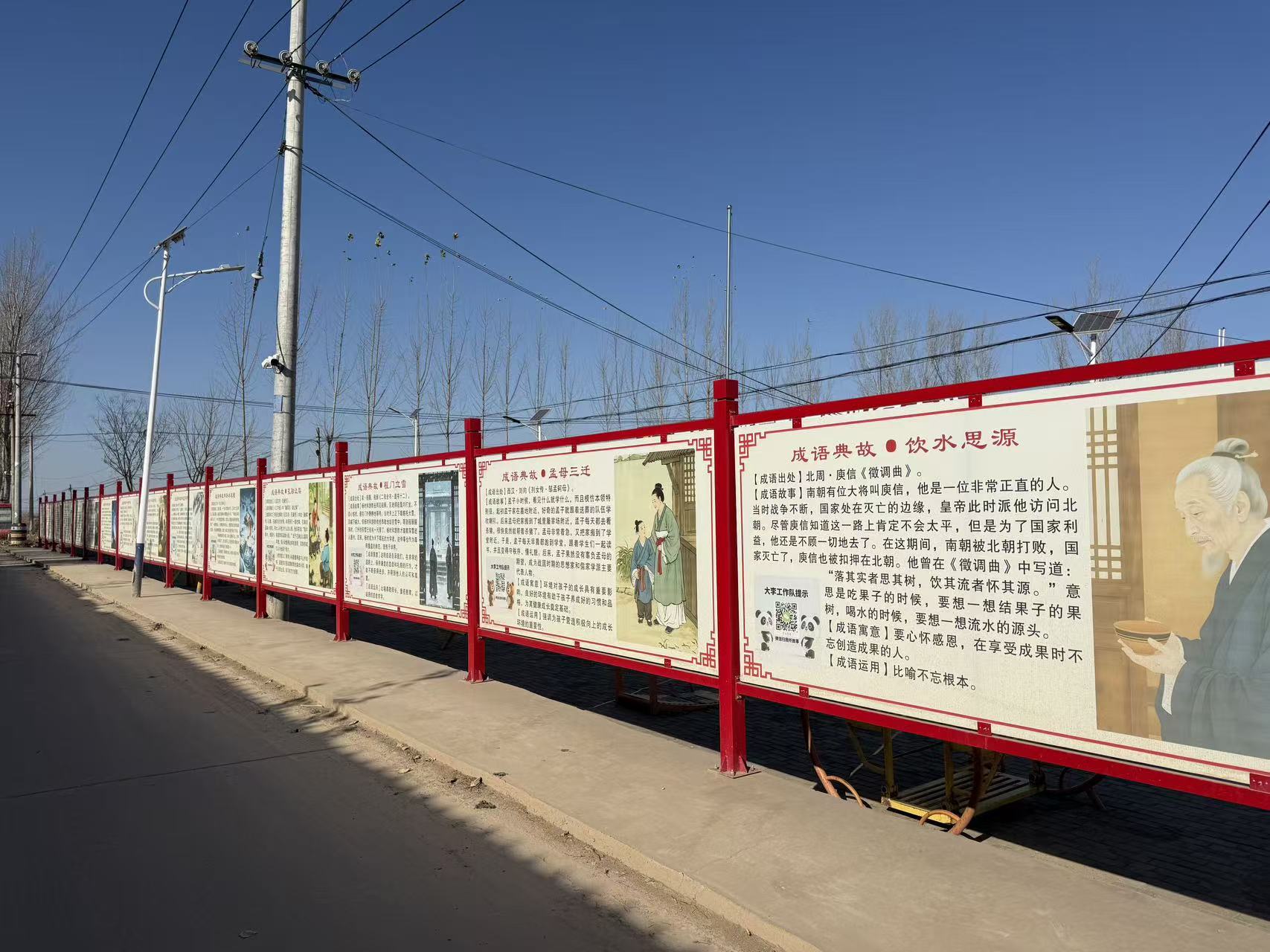 “以前农闲的时候,大家就凑在一起闲聊打发时间。现在可不一样啦,没事就喜欢来这儿转转。这宣传栏不仅能教孩子们懂礼貌,咱自己也能从中学到不少为人处世的道理呢!”村民徐大千满脸笑意,手指着“家庭美德篇”的诗句感慨道。只见宣传栏上,“夫妻齐心桨共舞,风雨同舟情愈笃”的诗句,搭配着生动鲜活的插画,将孝老爱亲、邻里和睦的家风要求,以通俗易懂的方式展现得淋漓尽致;“孟母三迁”“卧冰求鲤”等成语典故板块,采用孩子们喜闻乐见的图文形式,把崇文重教、孝顺长辈的传统美德,如同种子般深深地根植在孩子们的心田。