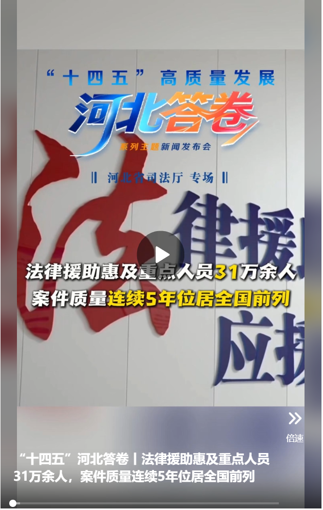 来源:河北广播电视台冀时客户端原标题:“十四五”河北答卷丨法律援助惠及重点人员31万余人,案件质量连续5年位居全国前列