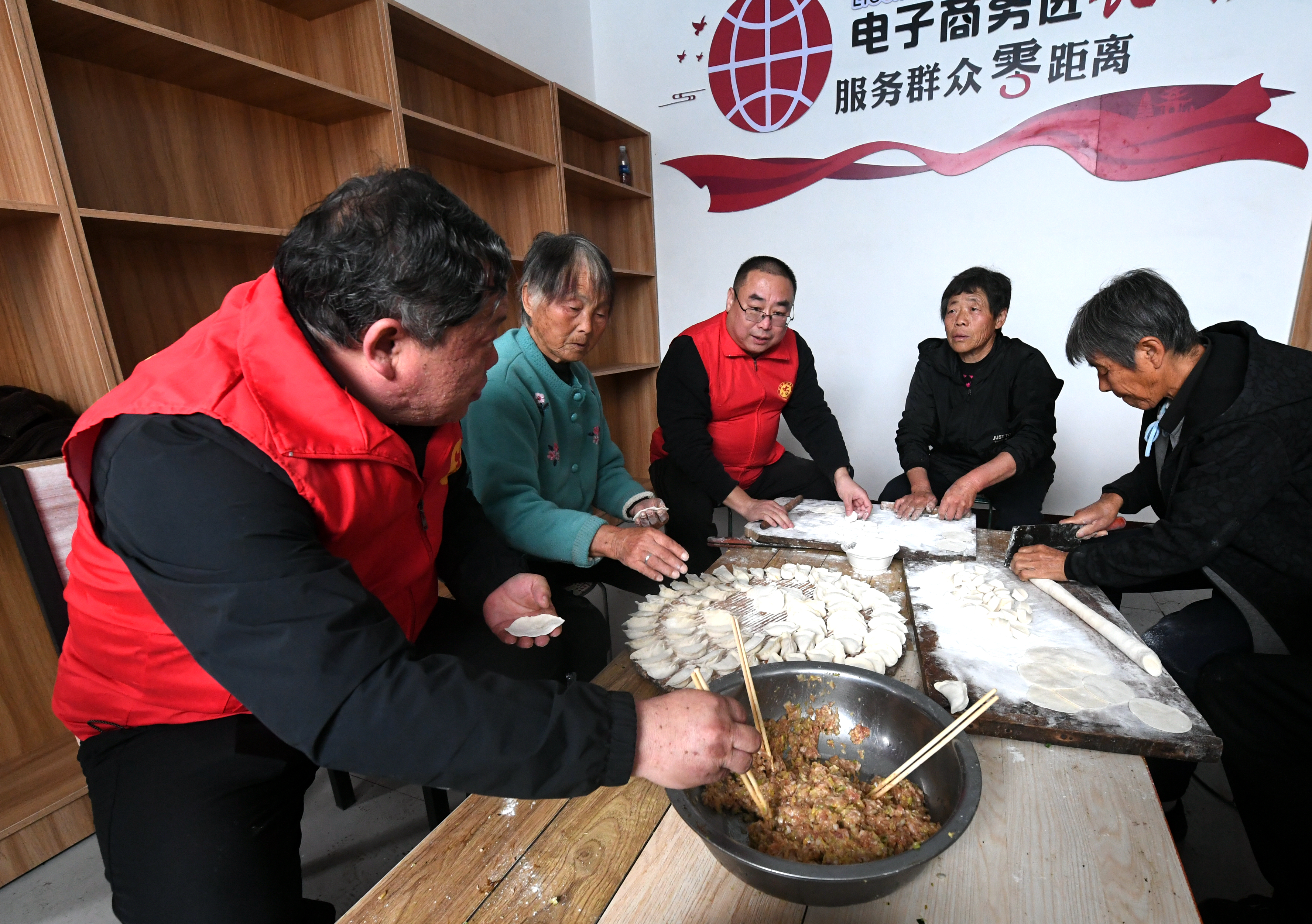 立冬时节,党支部组织“饺子宴”,工作队员、村干部、党员志愿者与村民们欢聚一堂,话家常、凝真情。