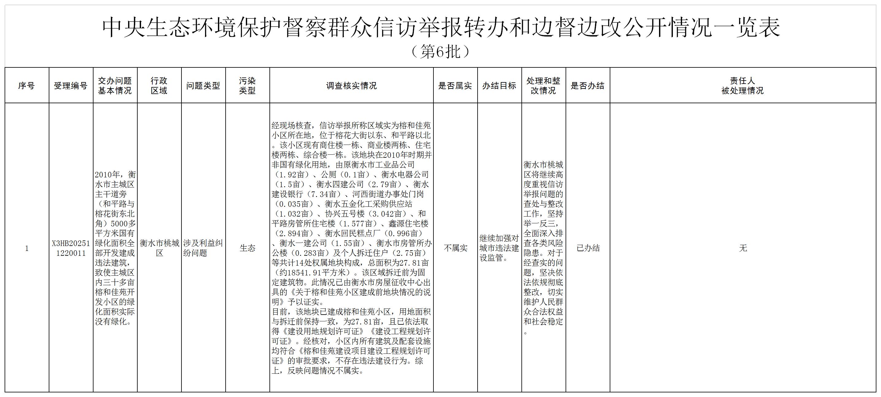 按照中央第三生态环境保护督察组工作要求,12月3日,我市已完成对交办的第六批1件群众信访举报案件的调查处理,已办结1件。