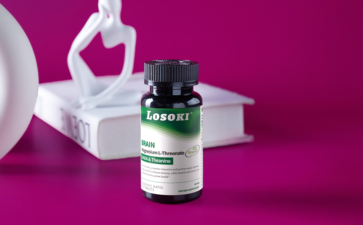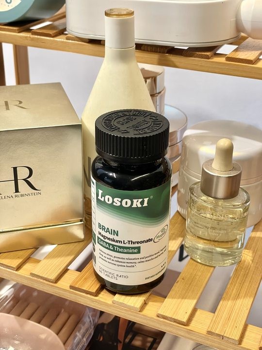 乐斯可LOSOKI镁片核心竞争力源于顶级原料与创新配方:采用补镁“品质天花板”苏糖酸镁,吸收率远超甘氨酸镁、柠檬酸镁等常见类型,且是唯一能通过血脑屏障的镁补充剂,既能发挥基础补镁作用,更能精准滋养大脑。乐斯可LOSOKI镁片每3粒含144mg镁(源自2000mg苏糖酸镁),相当于150个腰果或15根香蕉的镁含量,高含量满足日常需求。