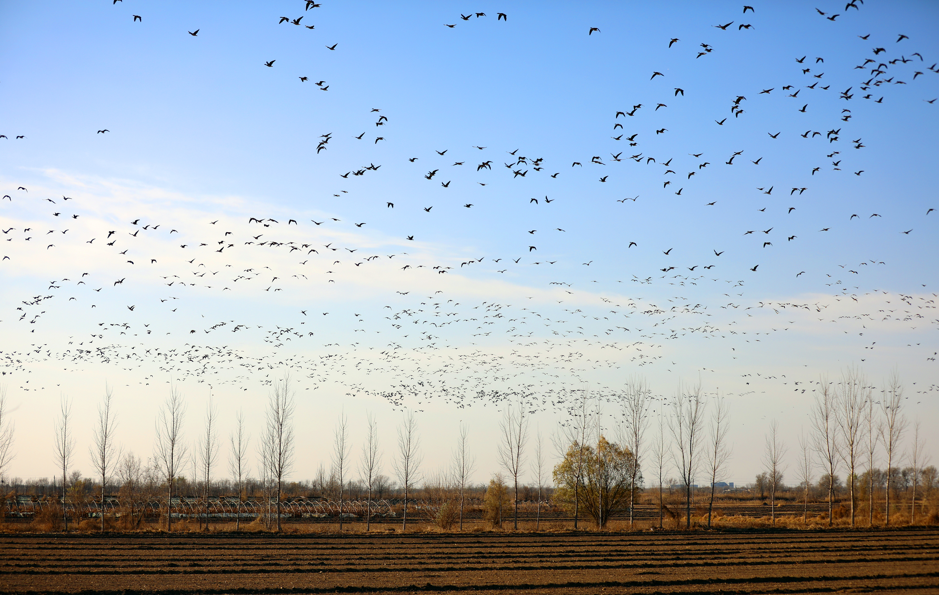 “大雁对栖息地的生态环境要求很高,能在城市周边的农田里看到这么大规模的雁群,说明衡水湖周边的生态越来越好。”衡水滨湖新区资源保护局副局长张余广介绍,衡水湖作为“城市休闲客厅”,不仅为市民提供了亲近自然的空间,更成为候鸟南迁途中的重要“驿站”。除了大雁,近日在湖区及周边农田还能观测到鸬鹚、绿头鸭等鸟类,各类候鸟与农田、湖水、城市景观相映成趣,构成一幅自然与生态深度融合的美丽画卷。