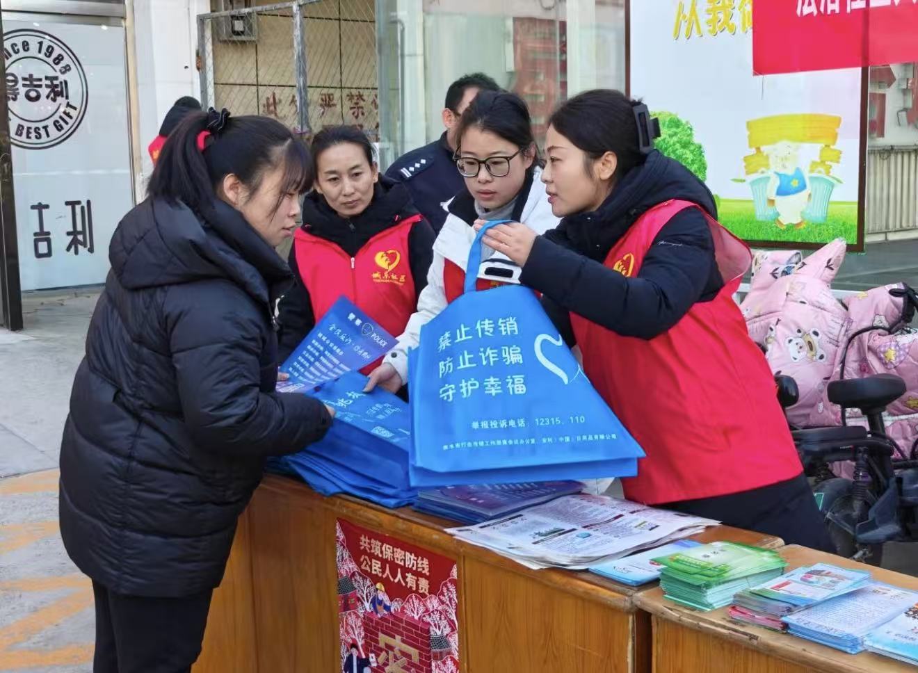 活动现场,社区工作人员聚焦居民日常生活高频法律需求,通过面对面答疑解惑、发放宣传资料等通俗直观的方式,向过往居民普及宪法基本要义、婚姻家庭纠纷调解、邻里矛盾化解、合法权益保护等热点法律知识。工作人员将专业法律条文转化为贴近生活的实用指引,耐心解答居民疑问,帮助大家轻松理解法律内涵,切实提升法治认知水平和依法维权能力。