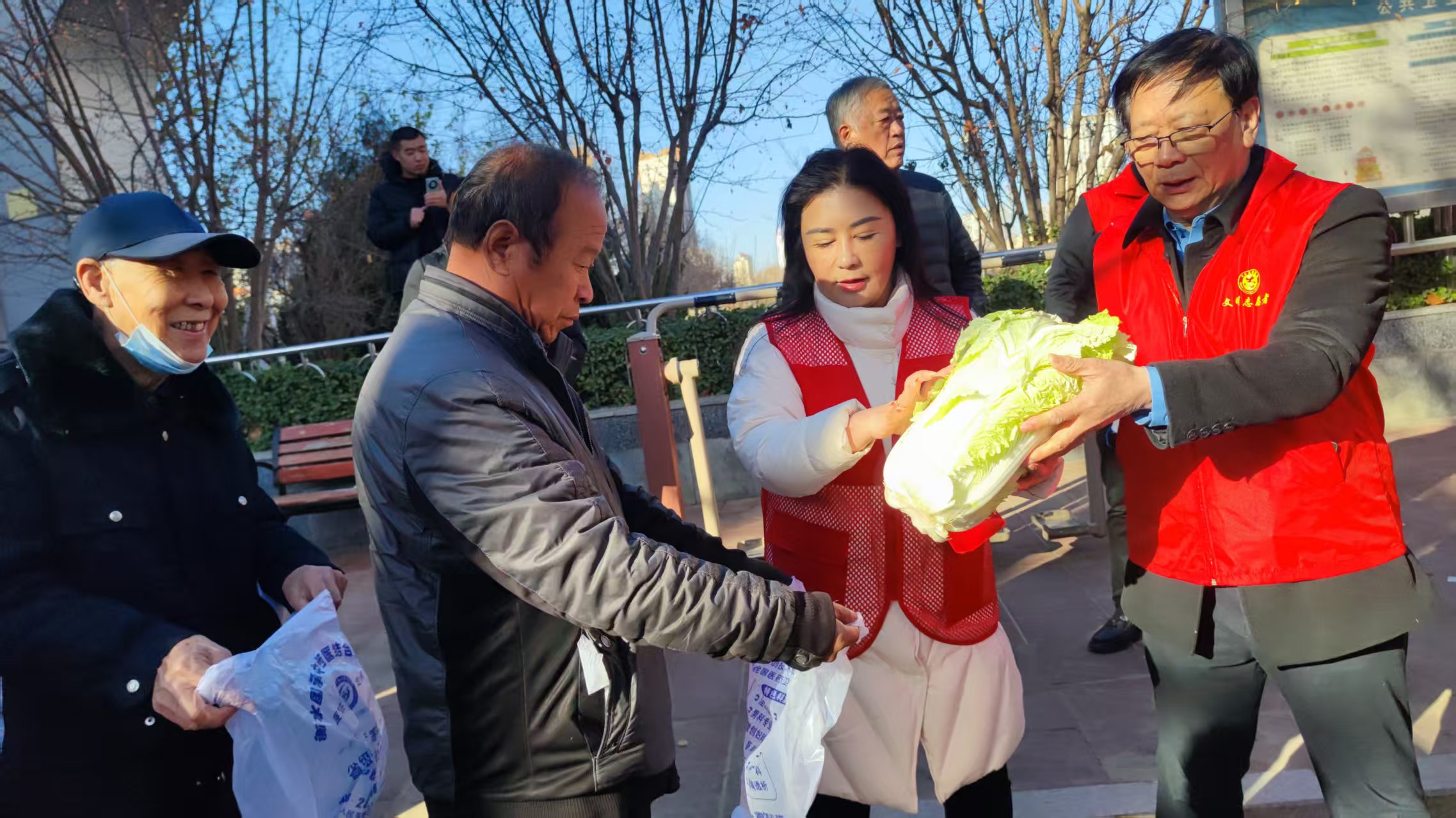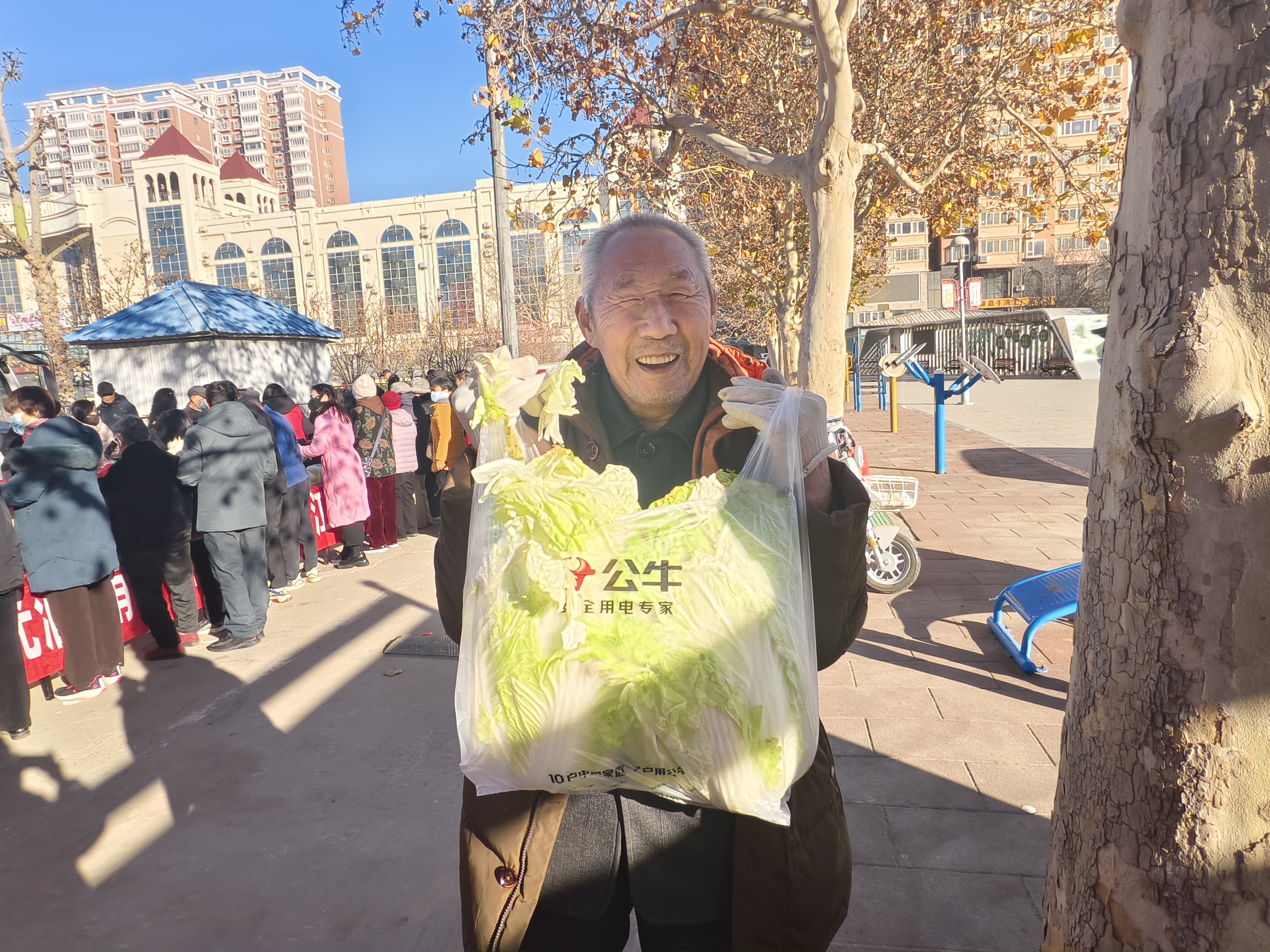 活动现场,环卫工人、外卖配送员、社区老人等群体陆续到来,志愿者们一边热情地将白菜打包好递到他们手中,一边与他们亲切交谈,关切地询问日常冷暖,现场笑声融融,温情流动。随后,爱心队伍继续行动,将新鲜白菜送至桃城区社区老年公寓,让这份暖意延续到更多需要关爱的群体。
