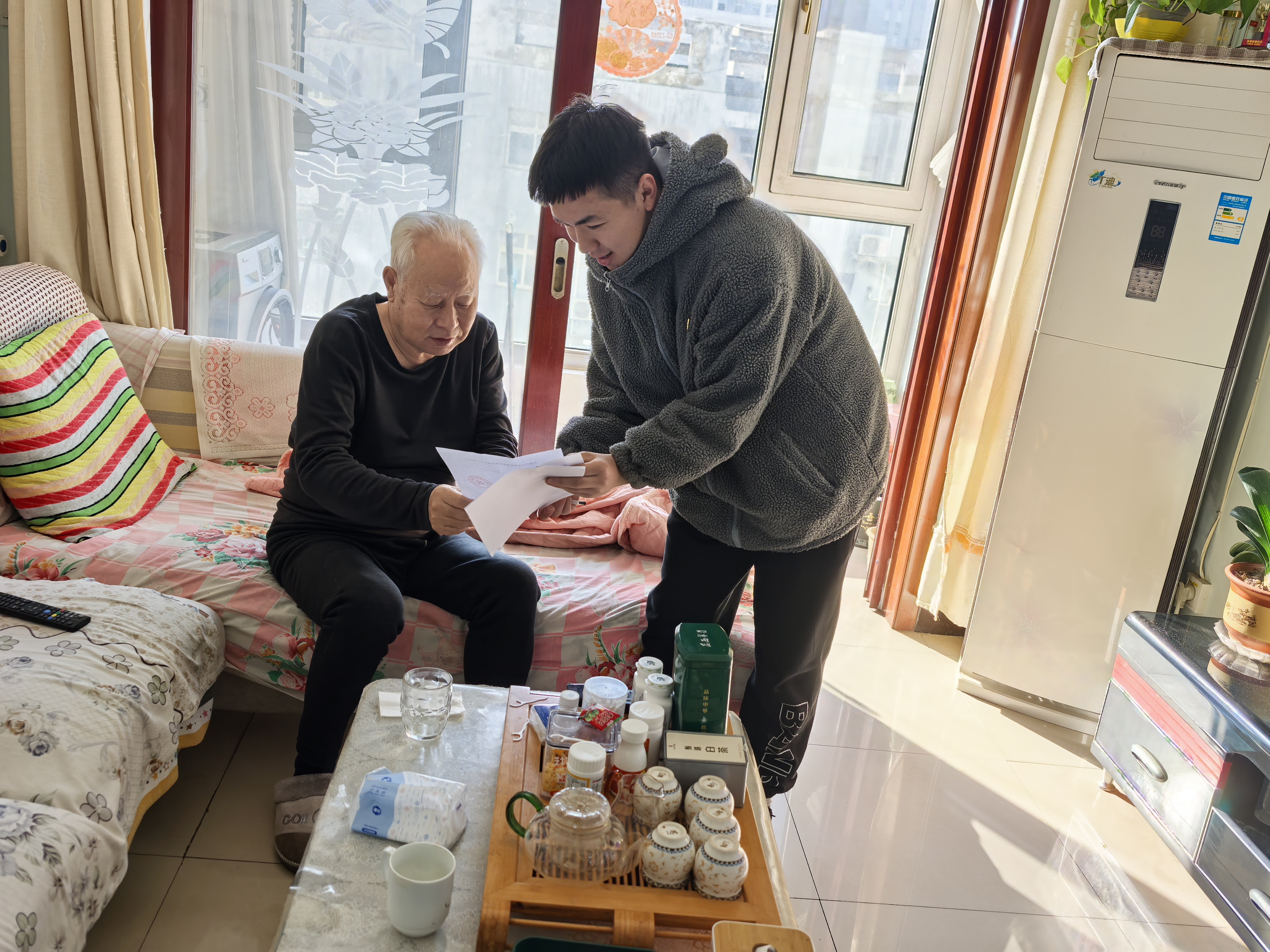 活动现场,志愿者与结对老人面对面交流,细致了解健康状况与生活困难,填写《60岁以上老人等级评级表》,并主动“接单”解决急难愁盼。82岁的陈文旭老人因不熟悉智能手机,迟迟无法完成高龄补贴认证。党员李学良与志愿者付俊英上门后,一个耐心讲解,一个从旁协助,终于帮助老人完成认证。陈文旭老人感慨:“这事儿愁了我好几天,你们一来就解决了!”