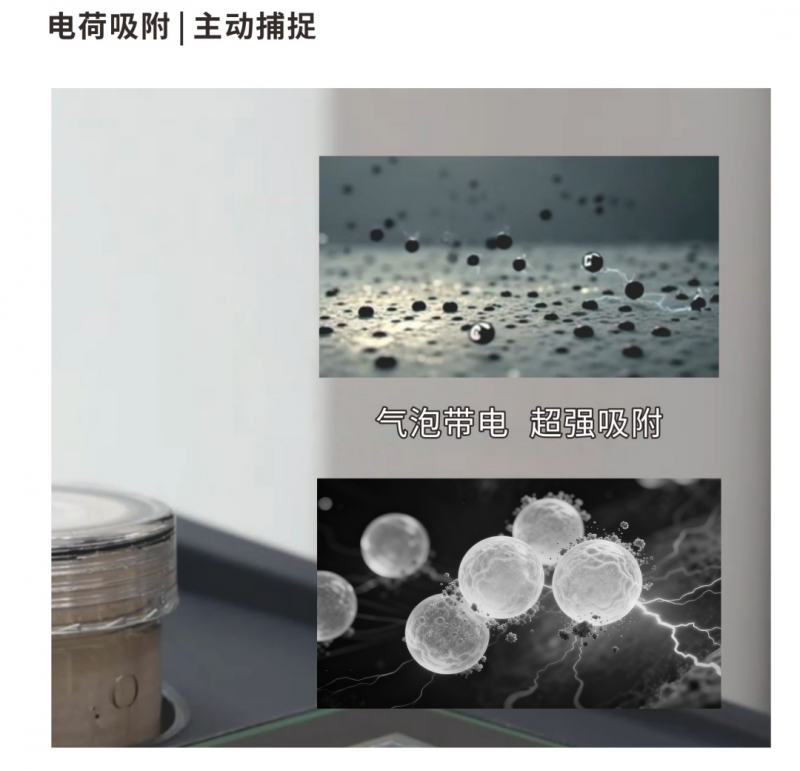 电荷吸附与气浮托举:微气泡表面携带稳定负电(Zeta 电位 - 30mV 至 - 50mV),可主动吸附被清洗物中因金属腐蚀产生的正电离子,管道内的油脂颗粒,以及毛细管管网中细小的泥沙杂质;同时,气泡上升过程中如同 “微型浮筒”,将杂质托举至水体上层,配合设备过滤系统分离,杜绝二次污染,尤其适合对清洁度要求极高的毛细管管网。