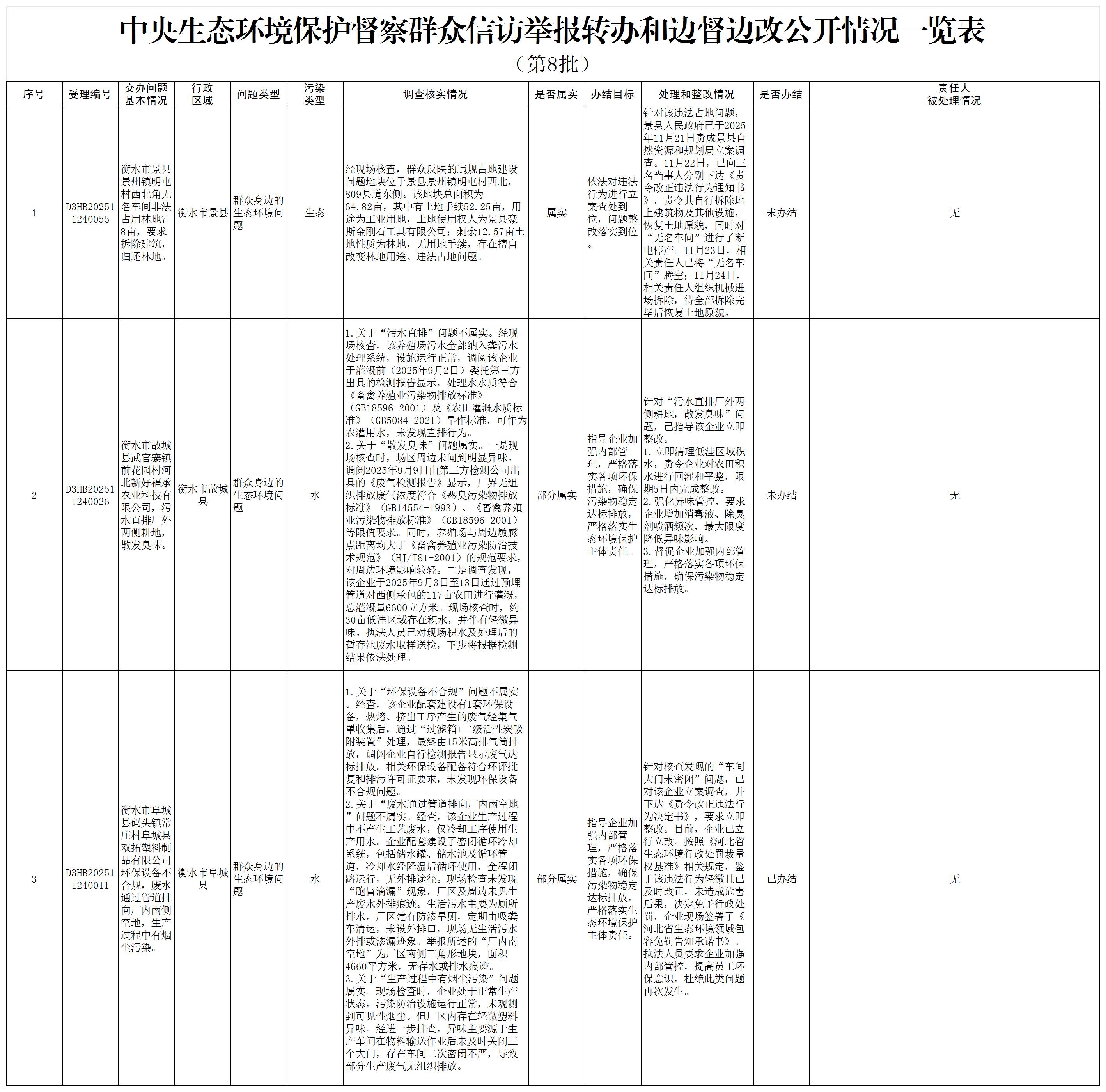 按照中央第三生态环境保护督察组工作要求,12月5日,我市已完成对交办的第八批3件群众信访举报案件的调查处理,其中已办结1件,未办结2件。